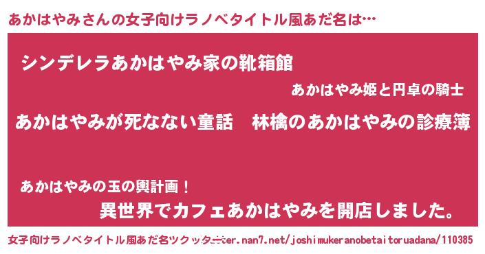 | ヘコむあだ名 | 『あかはやみ(笑)』『あかもー』 |