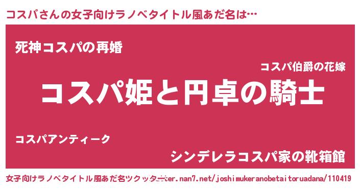 | 男性向けラノベタイトル風あだ名 | 『コスパの憂鬱』『緋弾のコスパ』 |