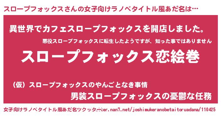 | 男性向けラノベタイトル風あだ名 | 『ノーゲーム・ノースロープフォックス』 |