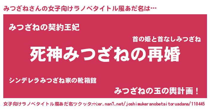 | 男性向けラノベタイトル風あだ名 | 『ノーゲーム・ノーミツザネ』 |