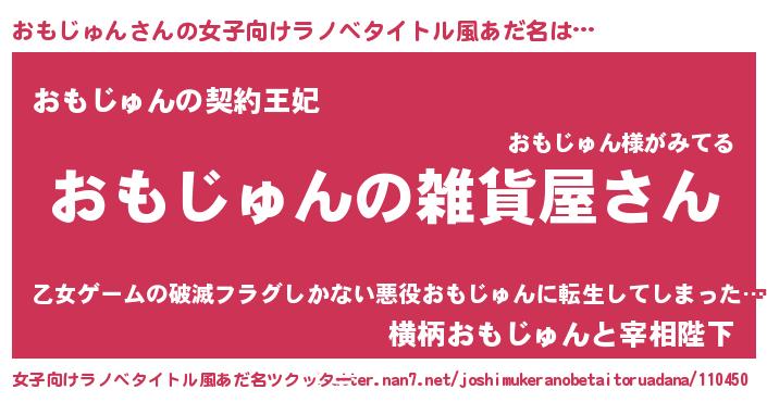 | 男性向けラノベタイトル風あだ名 | 『やはりおもじゅんの青春ラブコメはまちがっている 』 |