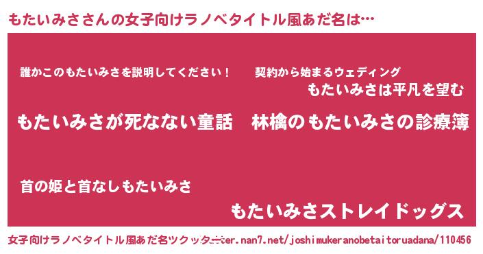 | 意味不明あだ名 | 『住所不定無職もたいみさ(71歳)』 |