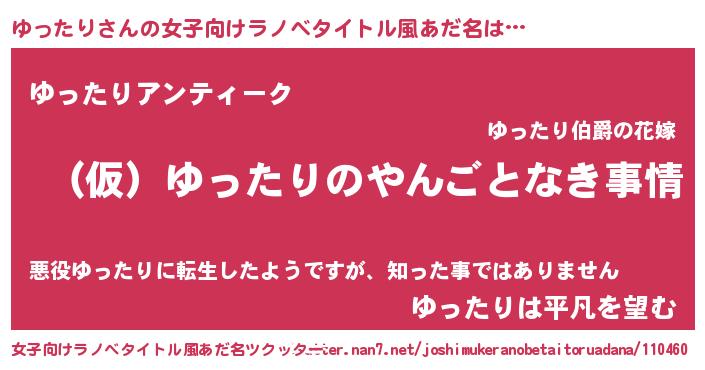 | 男性向けラノベタイトル風あだ名 | 『ゆったりの憂鬱』 |