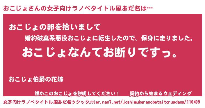 | 意味不明あだ名 | 『自称おこじょ』『ペロリンおこじょ』 |