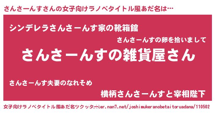 | 意味不明あだ名 | 『さんさーんすフォーエバー』 |