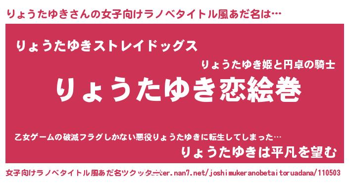 | ヒーロー風カッコイイあだ名 | 『愛の使者りょうたゆき』『魔戒騎士リョ』 |