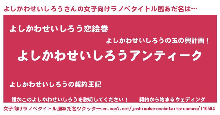 | ヘコむあだ名 | 『よしっふぃ~』『よしかわせいしろう(爆)』 |