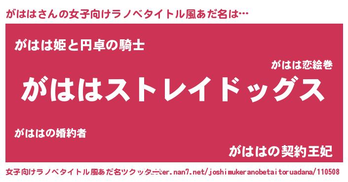 | ヘコむあだ名 | 『がはもー』『がはは(苦笑)』『豆乳』 |