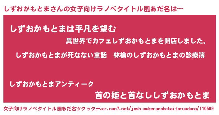 | ピコ太郎風あだ名 | 『シズ四郎』『ピコシ郎』『シコ十郎』 |