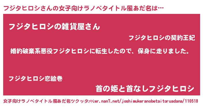 | 男性向けラノベタイトル風あだ名 | 『転生したらフジタヒロシだった件』 |
