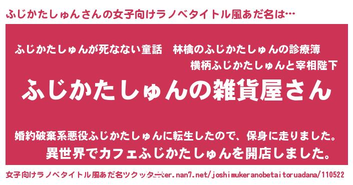 | 男性向けラノベタイトル風あだ名 | 『やはりふじかたしゅんの青春ラブコメはまちがっている 』 |