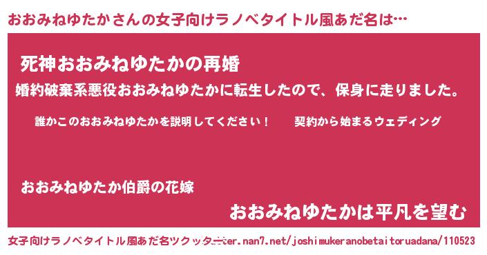 | 恥ずかしいあだ名 | 『プリティーおおみねゆたか』『おおちん』 |