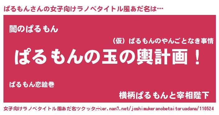| 男性向けラノベタイトル風あだ名 | 『転生したらぱるもんだった件』 |