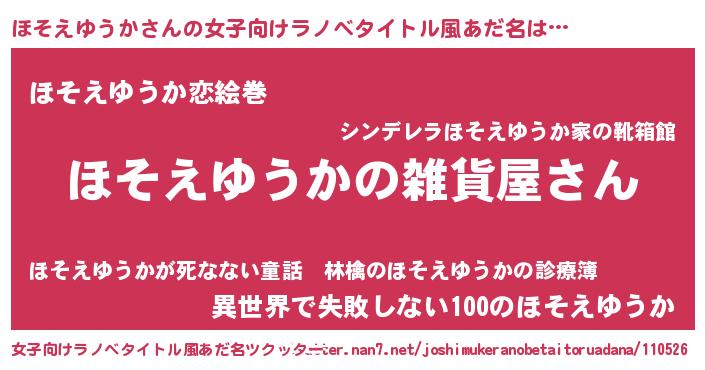 | 男性向けラノベタイトル風あだ名 | 『やはりほそえゆうかの青春ラブコメはまちがっている 』 |
