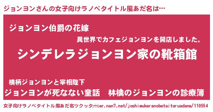 | 意味不明あだ名 | 『ジョンヨンフォーエバー』 |