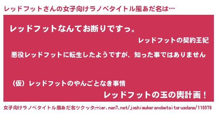 | 意味不明あだ名 | 『住所不定無職レッドフット(77歳)』 |