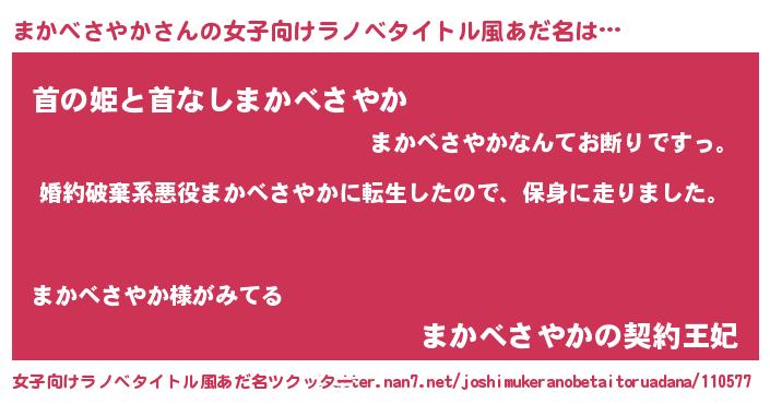 | 男性向けラノベタイトル風あだ名 | 『マカベサヤカスレイヤー』 |