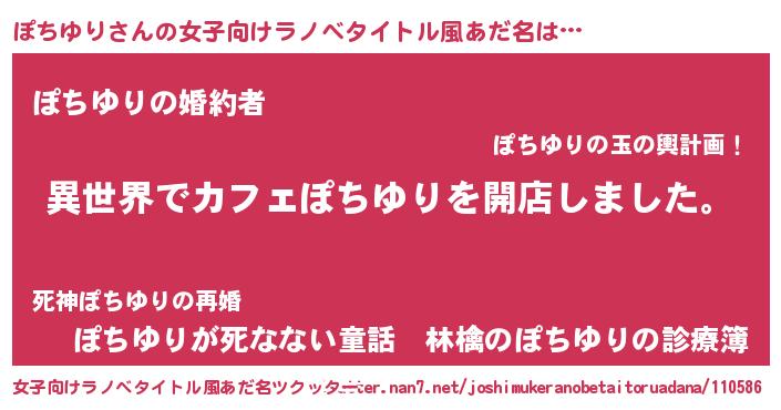 | 男性向けラノベタイトル風あだ名 | 『誰もが恐れるあのぽちゆりが、ぼくの専属メイドになるようです。』 |
