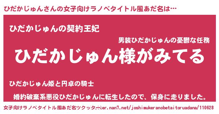 | 男性向けラノベタイトル風あだ名 | 『ひだかじゅんの嫁は女の子じゃないと思った?』 |