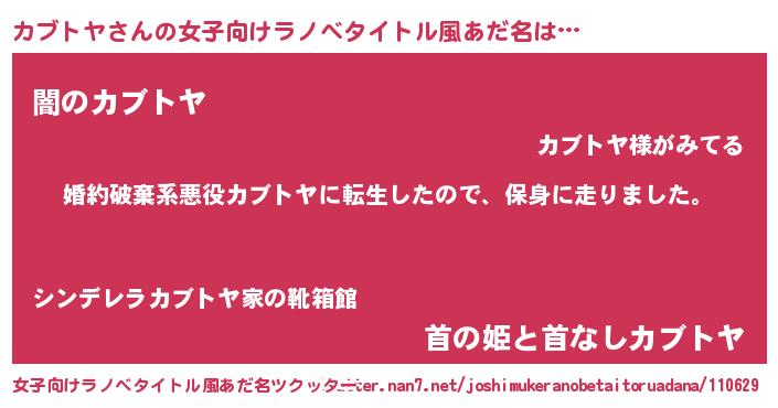 | 男性向けラノベタイトル風あだ名 | 『カブトヤスレイヤー』 |
