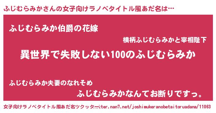 | 男性向けラノベタイトル風あだ名 | 『ふじむらみかという概念が存在しない退屈な世界 』 |