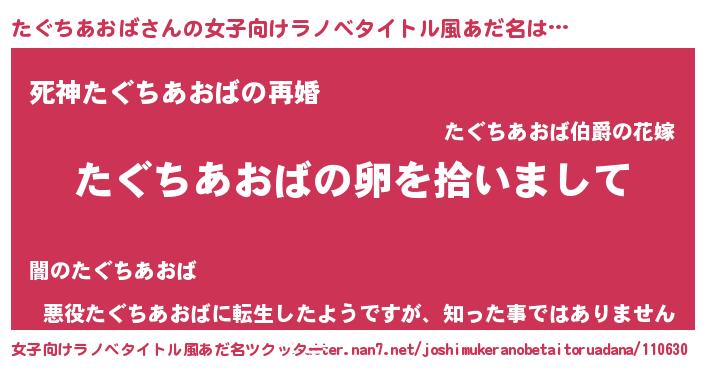 | 意味不明あだ名 | 『とにかく怪しいたぐちあおば』 |