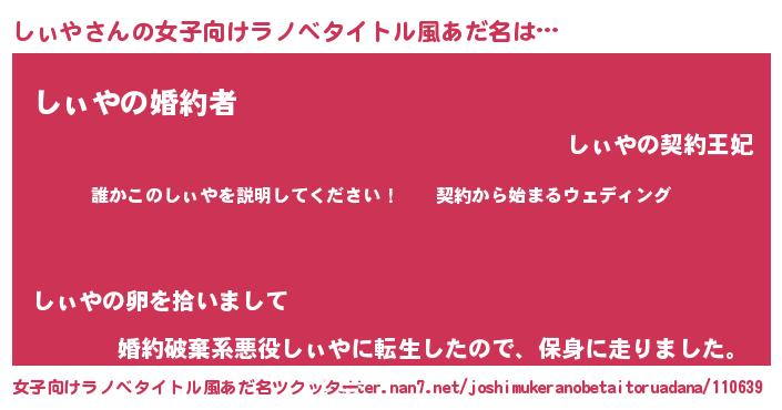 | 男性向けラノベタイトル風あだ名 | 『シィヤアートオンライン』 |