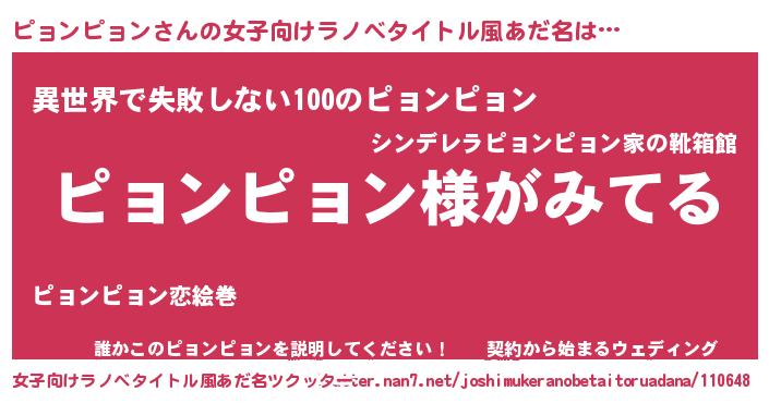 | 男性向けラノベタイトル風あだ名 | 『ピョンピョンの嫁は女の子じゃないと思った?』 |