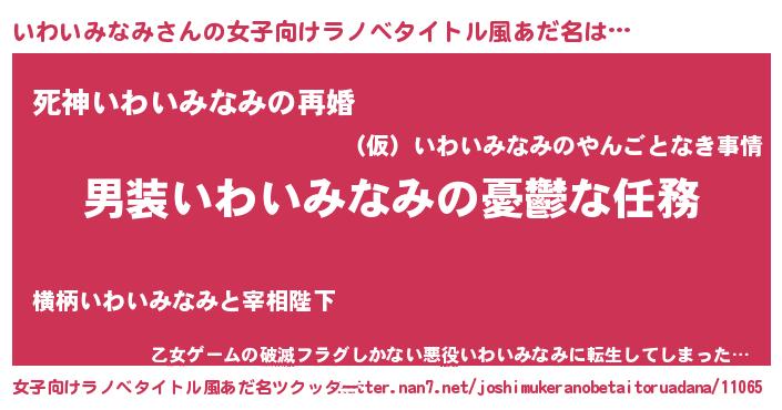 | 男性向けラノベタイトル風あだ名 | 『うちのいわいみなみが世界を掌握している!』 |