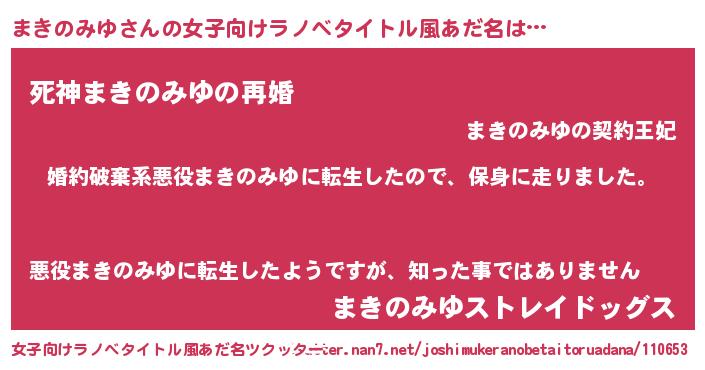 | 胡散臭い通販商品みたいなあだ名 | 『100人中100人が認めたイリジウム磁石…その名も「まきのみゆ」』 |