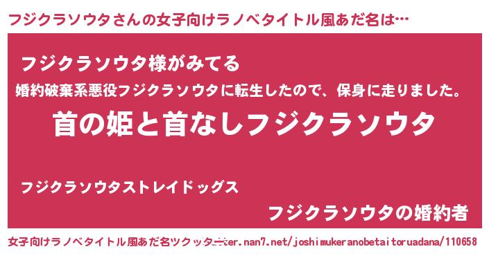 | 胡散臭い通販商品みたいなあだ名 | 『信頼と実績のサプリメント…その名も「フジクラソウタ」』 |