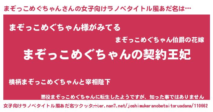 | 胡散臭い通販商品みたいなあだ名 | 『来世でも幸せになれる招き猫…その名も「まぞっこめぐちゃん」』 |