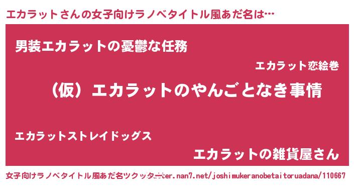 | ヒーロー風カッコイイあだ名 | 『スーパーエカラット』『炎刃騎士エカ』 |