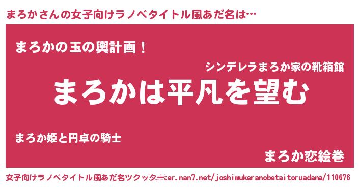 | 男性向けラノベタイトル風あだ名 | 『ダンジョンにまろかを求めるのは間違っているだろうか』 |