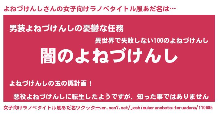 | 意味不明あだ名 | 『自称よねづけんし』 |