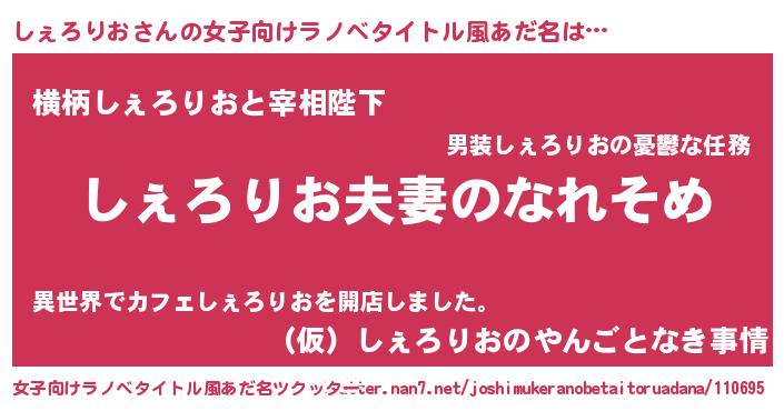 | 男性向けラノベタイトル風あだ名 | 『おまえをオタクにしてやるから、俺をしぇろりおにしてくれ! 』 |