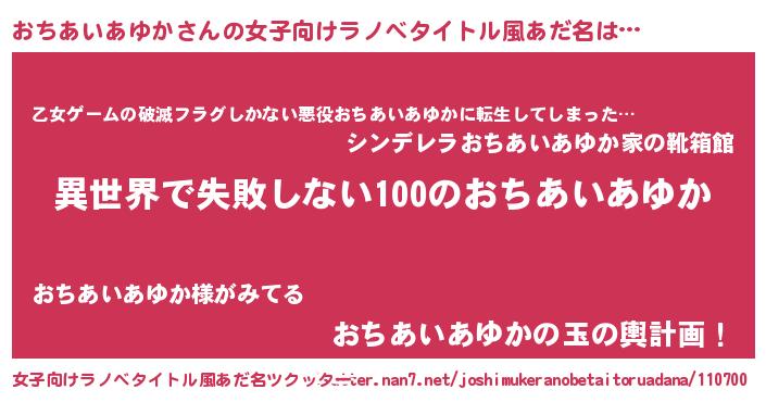 | 胡散臭い通販商品みたいなあだ名 | 『絶対に幸福をもたらす健康食品…その名も「おちあいあゆか」』 |