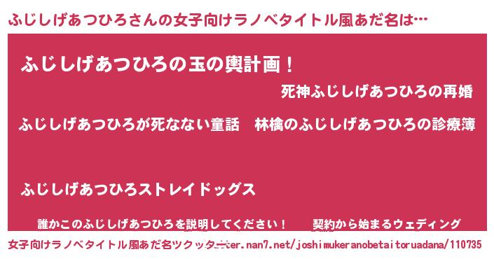 | 意味不明あだ名 | 『住所不定無職ふじしげあつひろ(41歳)』 |