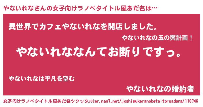 | 男性向けラノベタイトル風あだ名 | 『魔法科高校のやないれな』 |
