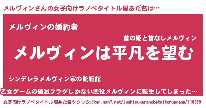 | 胡散臭い通販商品みたいなあだ名 | 『信頼と実績のペンダント…その名も「メルヴィン」』 |