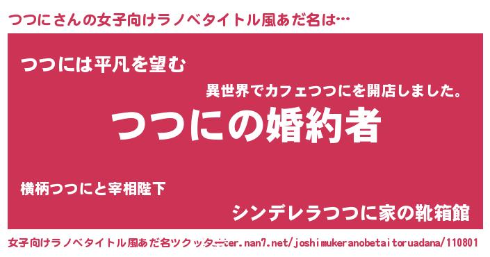 | 男性向けラノベタイトル風あだ名 | 『うちの娘の為ならば、俺はもしかしたらつつにも倒せるかもしれない。』 |