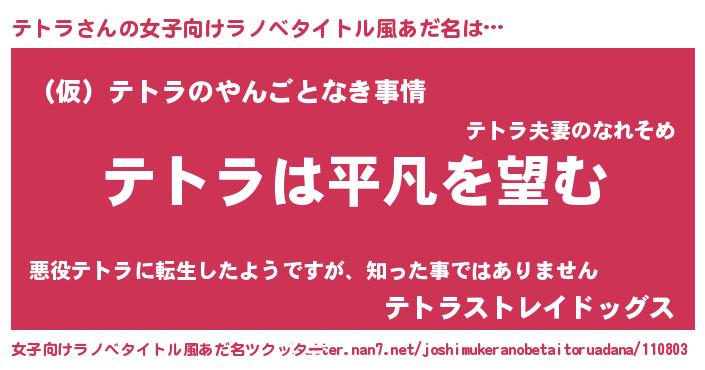 | 意味不明あだ名 | 『とにかく怪しいテトラ』『自称テトラ』 |