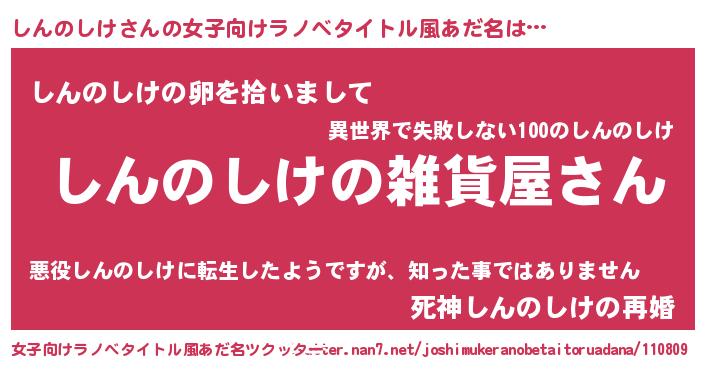 | 男性向けラノベタイトル風あだ名 | 『やはりしんのしけの青春ラブコメはまちがっている 』 |