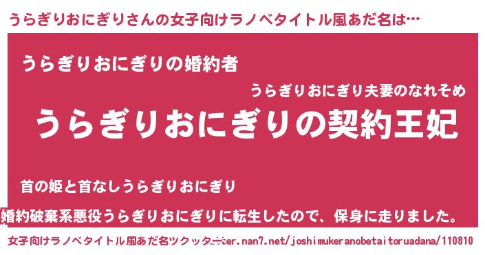 | 男性向けラノベタイトル風あだ名 | 『誰もが恐れるあのうらぎりおにぎりが、ぼくの専属メイドになるようです。』 |