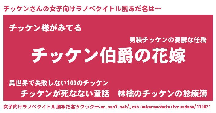 | 男性向けラノベタイトル風あだ名 | 『やはりチッケンの青春ラブコメはまちがっている 』 |