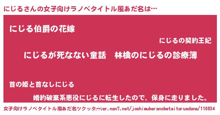 | ファンタジー風あだ名 | 『ヴァルニジーナ』『エターナルニジルー』 |