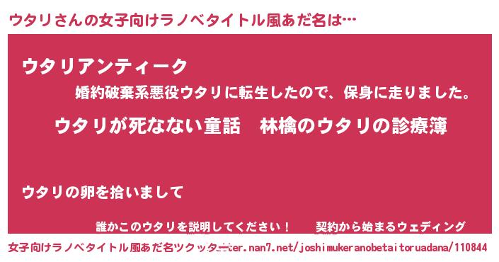 | 男性向けラノベタイトル風あだ名 | 『魔弾の王とウタリ』『ウタリスレイヤー』 |