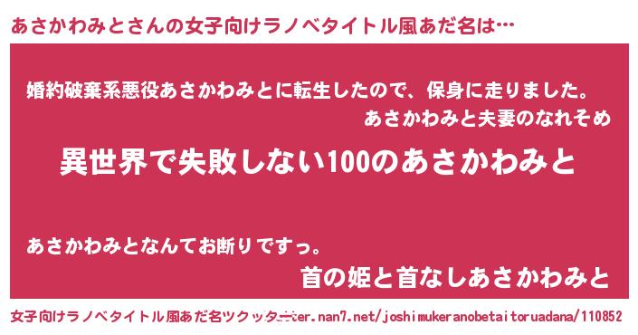 | 意味不明あだ名 | 『永久保存あさかわみと』 |