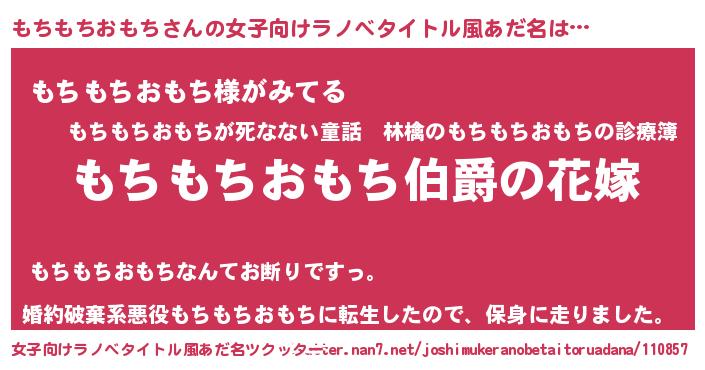 | 男性向けラノベタイトル風あだ名 | 『やはりもちもちおもちの青春ラブコメはまちがっている 』 |
