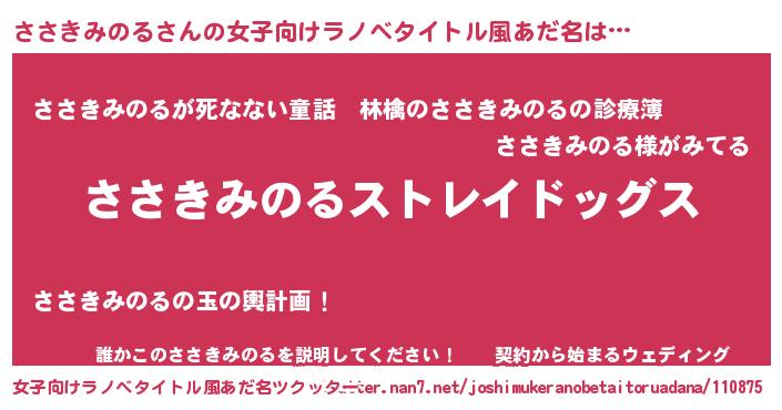 | 男性向けラノベタイトル風あだ名 | 『Re:ささきみのるから始める異世界生活』 |